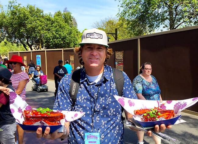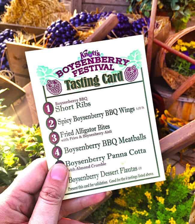 when you go to the Knott's Boysenberry Festival, plan on coming with an empty tummy, because with over 70 boysenberry items available, you are going to want to try them all. from boysenberry pie to boysenberry short ribs...there is something fun to satisfy everyone's boysenberry fancy. the best deal of the festival is the Boysenberry "Tasting Card" which can be purchased for $25. This gets you 6 boysenberry food tastings which you can pick up at your leisure around Ghost Town. each item can be redeemed anytime during the festival. get one per person or share it so that you can also try other fun boysenberry items throughout the day. there is so much to choose from that you will probably need to come multiples days!
