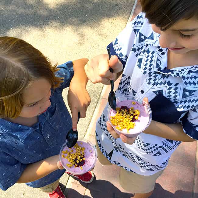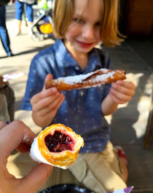 all of my boys...including the hubby, look forward to going to the boysenberry festival every year. they all have there favorite boysenberry items that they want to get. my youngest has been begging for the grilled can with boysenberry butter and a boysenberry Icee for weeks. so of course we had to get it for him. i might have even shared it with him.