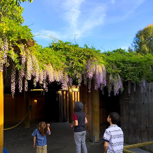 and before you leave the park, stop and check out the blooming wisteria, the oldest living thing at Knott's Berry Farm. they are super beautiful and located right next to the Geode Shop near the entrance to Ghost Town.