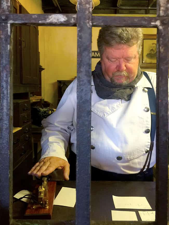 Post Office/Telegraph – this is the location of the town’s only telegraph, the post office is the center of activity on Main Street. here, you can send and receive telegrams for the Calico residents or for yourself. the boys had a great time learning from the Post Master who taught the how to decode telegrams, pick up mail for our townsfolks, or help the Pony Express rider deliver packages. we were also ordered to deliver a newspaper to the School Teacher, because one of Calico's criminals was finally captured.