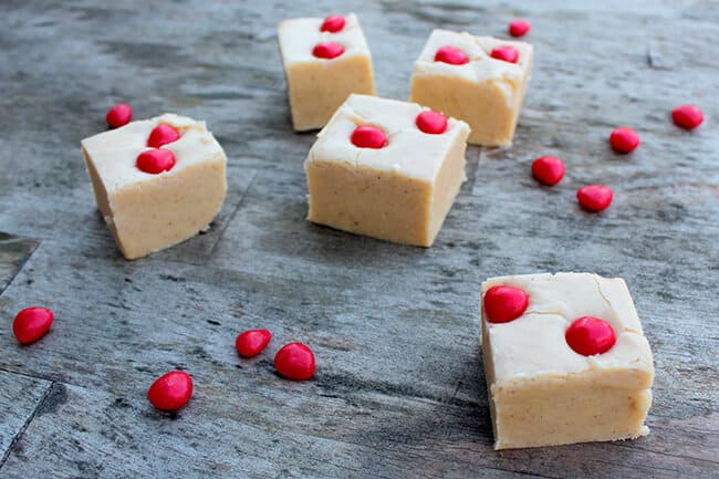 line a 9-inch square pan with foil, with ends of foil extending over sides. bring the sugar, butter and evaporated milk to full rolling boil in a saucepan on medium heat, stirring constantly. cook 4 minutes until candy thermometer reaches 234°f, stirring constantly. remove from heat. next, stir in chocolate and marshmallow creme; stir until melted. add vanilla and spices; mix well. finally, pour into a prepared pan. spread to cover bottom of pan and top with red hots. cool completely. when ready to serve, cut into 1" squares.