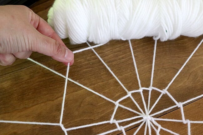 Continue wrapping until the web is finished. you will want to adjust it as you go to make sure it's even and spiral.