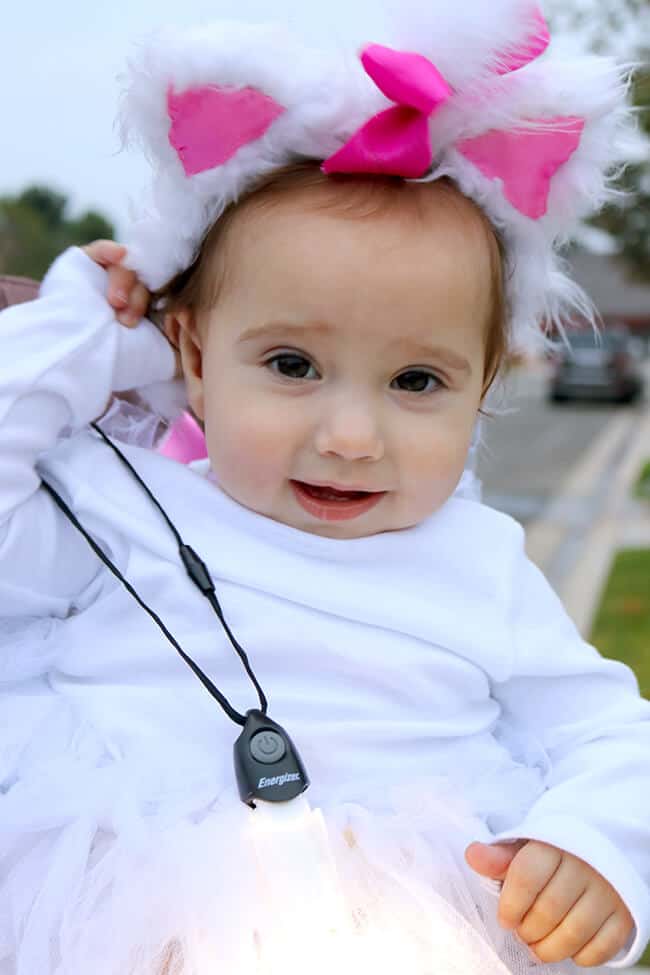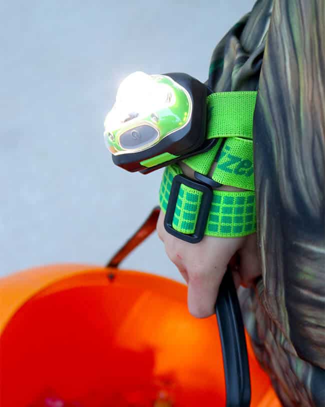 No matter what the costume is, i's really important to make sure the kids can be seen by cars and other people when they are trick or treating. You don't want to worry about your kids’ safety after dark. Energizer® knows how important this is, so they have suggested a few ideas. A headlight wrapped around the wrists gives the perfect glow.