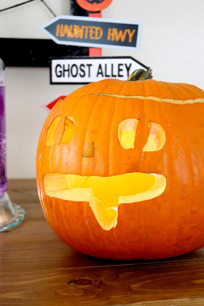 Here's a Tip for Making Your Carved Pumpkin Last Longer. After you carve your pumpkin, fill the sink up with water. Add 2-3 tablespoons of bleach to the water. Then, submerge your pumpkin. Make sure to wash all of the debris and seeds out of it. Then, completely dry your pumpkin. This with get rid of any bacteria on it, and help it to last a little longer before it starts to rot.