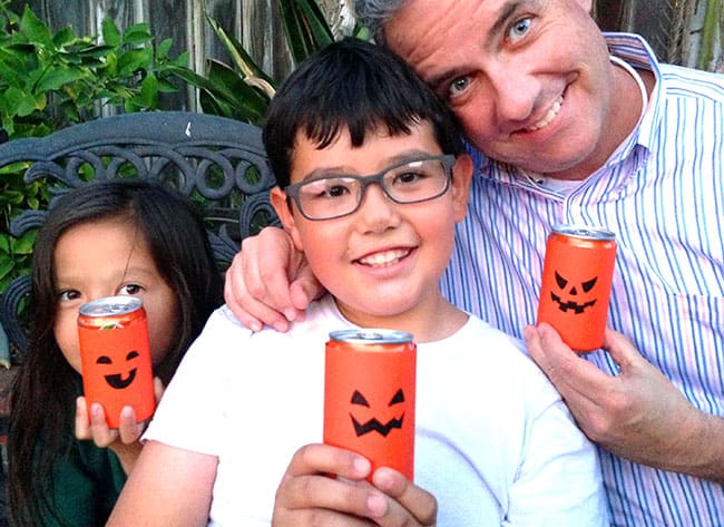 First up were drinks! I had the idea to make a Drink Pumpkin Patch out of the drinks. We used Fanta mini cans and the 20 oz. waters bottles, which made the perfect size for my pumpkin printables. However, you can use any size.