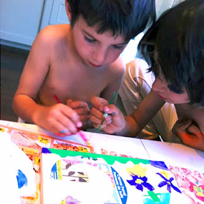 after i made sure the sticker paper was pressed down really good, i let the boys go to town painting the entire canvas. we used just regular acrylic craft paint.