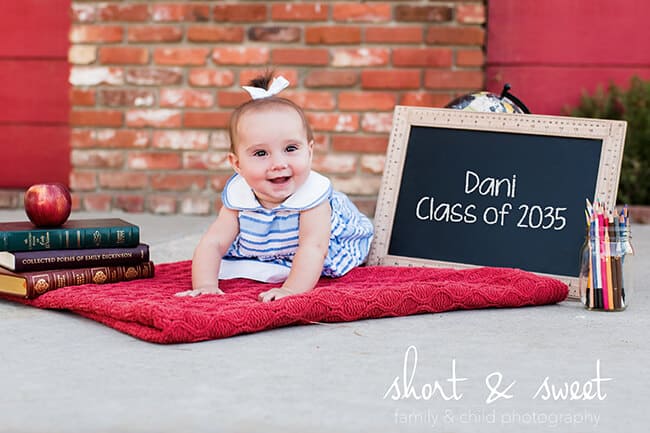 Finally, we couldn't end the session without photo of little Dani Kat. She won't be in preschool for at least 3 years, kindergarten for 5 years, and high school for 14 years, but i thought this was adorable. It's going to be so fun to show her this picture in 2035 when she is hopefully graduating high school.
