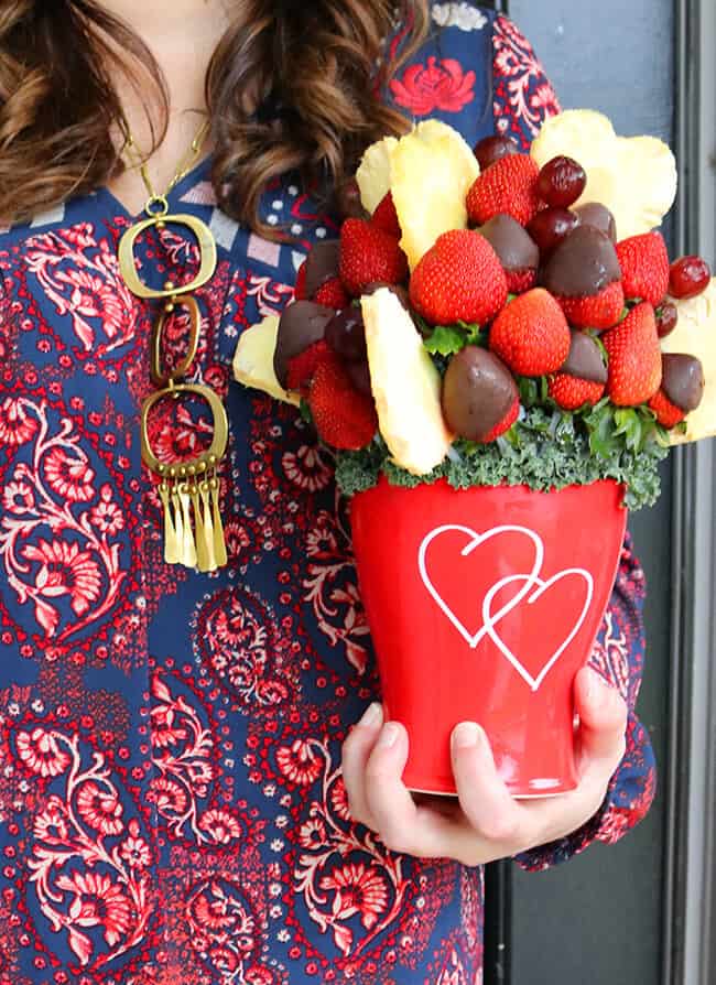 ordering an Edible Arrangement is easy! just visit the website to purchase now— don’t wait until the last minute, even though they do offer same day delivery. get one for Valentine’s on the 14th or even Galentine’s Day on the 13th (a “holiday” to celebrate the non-romantic female relationships in your life).