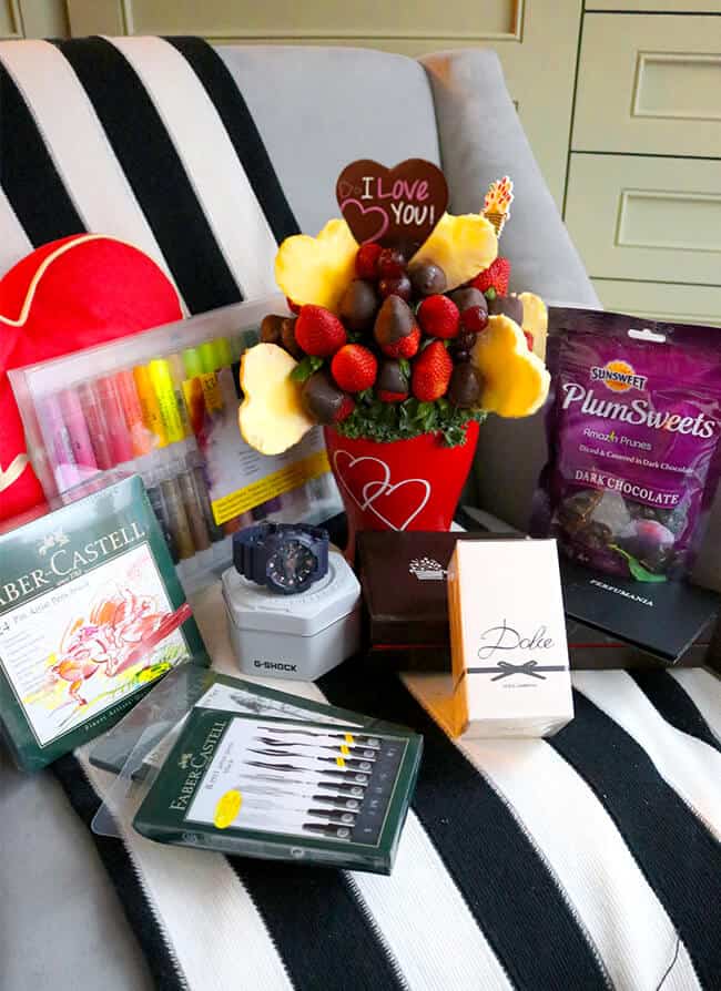 1) Edible Arrangements 2) Dolce by Dolce & Gabbana Fragrance & Perfumania Gift Certificate 3) Casio G-SHOCK S Series GMA-S110CM-2A Watch 4) Sunsweet PlumSweets 5) Faber-Castell Art Supplies