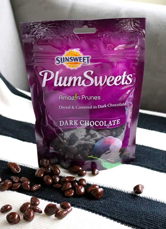 Sweet and delicious decadence of dark chocolate paired with scrumptious, bite-size pieces of Amaz!n Prunes, Sunsweet PlumSweets are creamy on the outside and chewy on the inside. these diced prunes coated in premium dark chocolate and are made with real fruit and no high fructose corn syrup. a great way to treat yourself, especially during Valentine’s Day.