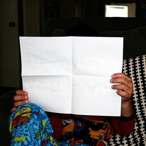 so, to make the day a little more exciting, i gave the boys this piece of paper. i told them that it would tell them where we were going.