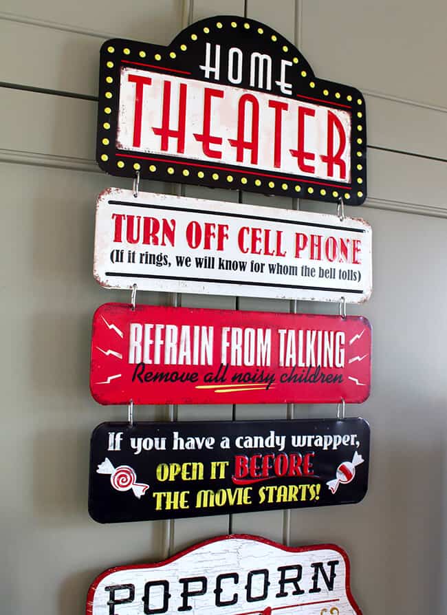 as for decorations, you can find lots of cool things at your local crafts store or on Etsy. vintage signs are fun too. i found this sign that i thought was perfect for our movie party.