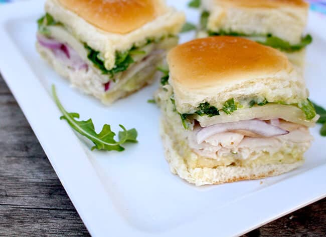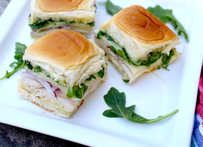 if i were to enter the contest, i would make my latest sandwich creation: Arugula Provolone Turkey Sandwich Sliders. my family has been on a turkey sandwich kick recently, and i have been designing some yummy new sandwich choices for my hubby and boys. these little turkey sliders are super good and my family loves them. they are perfect for a Sunday afternoon, appetizers at a party or for brunch. and by making one large sandwich that pulls apart, you save a lot of time in comparison to making individual sandwiches.