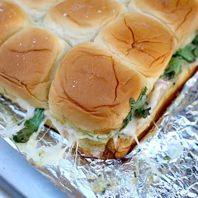 once the cheese is melted and you remove the sandwiches from the oven, they are ready to serve. carefully pull the foil away from the sandwiches. look how good that melted cheese looks! Mmmmmm