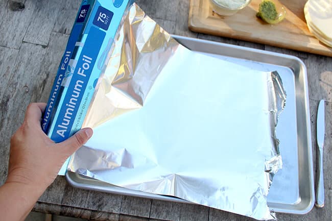 place a sheet of aluminum foil on a baking sheet.