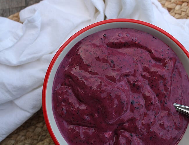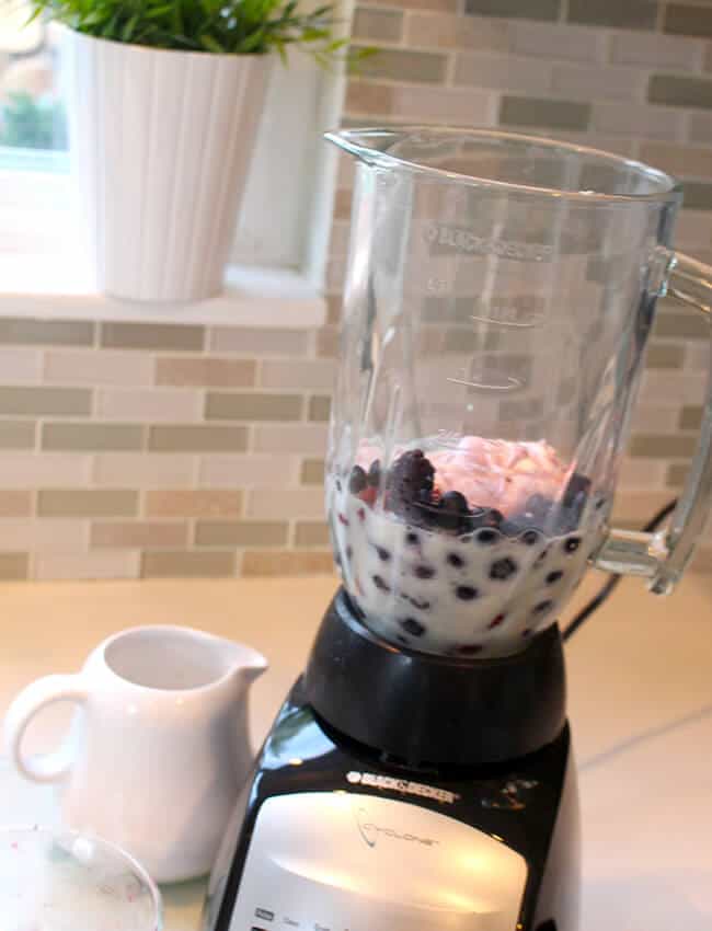 blend the berries, Noosa Yoghurt and Silk Almond milk in a blender until fully blended. if it is too thick, add more Silk, if it is too runny, add more berries.
