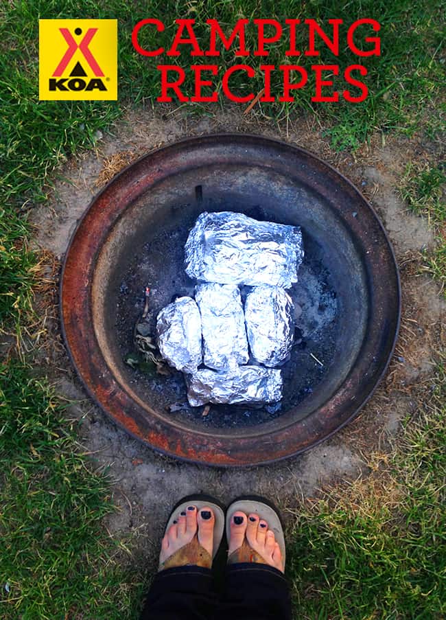 i am constantly having people ask me for suggestions on what to cook while they're camping, or more specifically, camping recipes. i have to admit though, when we go camping, we don't really rough it…or cook specific camping recipes. i buy a lot of pre-made meals, and we do a lot of foil meals like this lemon herb steak or this jalepeño cilantro lime steak meal. but we almost always do the obligatory s'mores over the campfire. and if we want to get fancy with the s'mores…we even might add a candy bar instead of plain chocolate. i've done more than a few unique s'more recipes, but that's really it for camping recipes. so it was great to find that on the KOA website there is an entire archive of camping recipes.