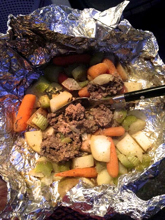the last camping recipe we tried was this "Hobo Meal" which is basically meat and veggies in a foil packet. the great thing about this meal is that everyone can pick what they like best to put into their own packet.
