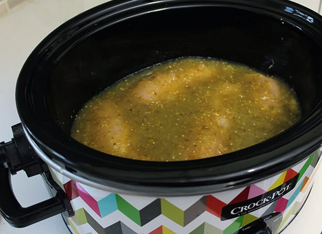 Pour an entire jar of salsa verde verde over the chicken.