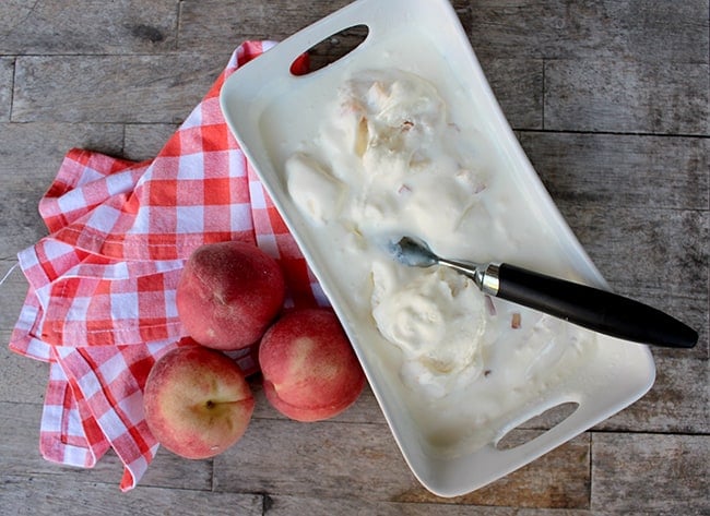 Peach Ice Cream: heat 3 cups chopped fresh peaches (4 peaches) and ¼ cup sugar in a sauce pan until the peaches are soft. place into the refrigerator until cool. add to vanilla mixture before placing into the ice cream maker.