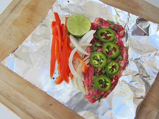 i have been getting ready for our road trip this next week, and have been trying to plan a few meals. i am not sure when or where we will actually be cooking over a campfire, but i definitely know i would like to do some campfire or barbecue cooking during the trip. and besides the Lemon Herb Steak Foil Packets i posted about last year, these Jalapeño Cilantro Lime Steak Foil Packets are one of my favorite camping meals to make. they are so easy, and leave no dirty dishes to clean, you just throw the foil away. i also love jalapeños, and the heat they bring to the dish…so i am putting these on our meal list. and if you have someone who doesn't love spicy, just omit the jalapeños.