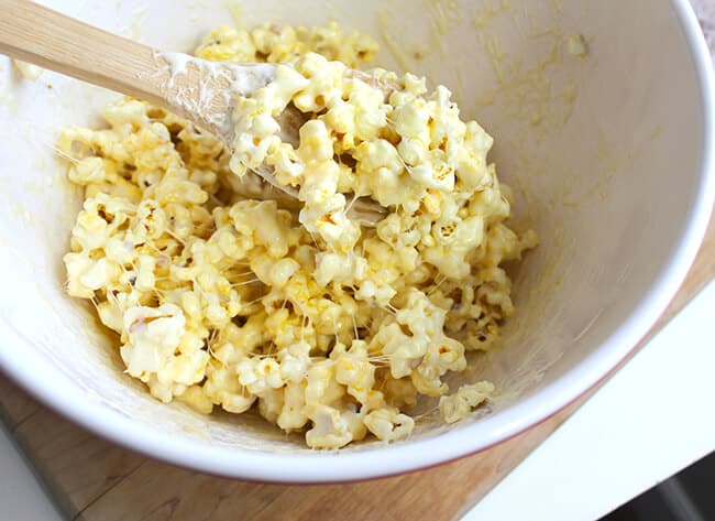 immediately pour over 7 cups of popped popcorn. stir until fully coated.