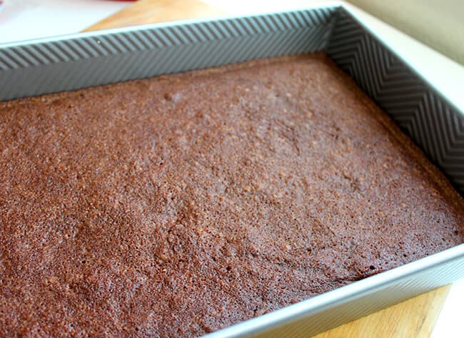to start, prepare a pan of brownies from a box mix. you can do 8 x 8" or 9 x 13"