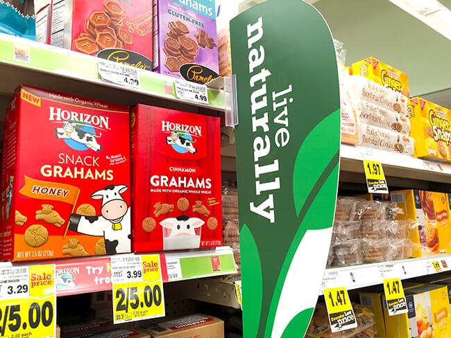 since i am taking control of the lunches this year, i decided to stock op on lunchbox supplies. off to the store i went...i have a Ralph's right across the street, a Kroger store. buying real food for our families should not be expensive or time consuming, so Kroger is working to ensure that it is easy to find foods your family needs at your local grocery store by providing natural products from brands such as Horizon Organic. it's really easy to find the natural foods around my local Ralph's, all you do is go to an aisle and look for the "live naturally" signs. you can find them on almost any aisle and even in the refrigerator section. this is were the organic and natural products will be found. this is where i purchase most of my groceries.