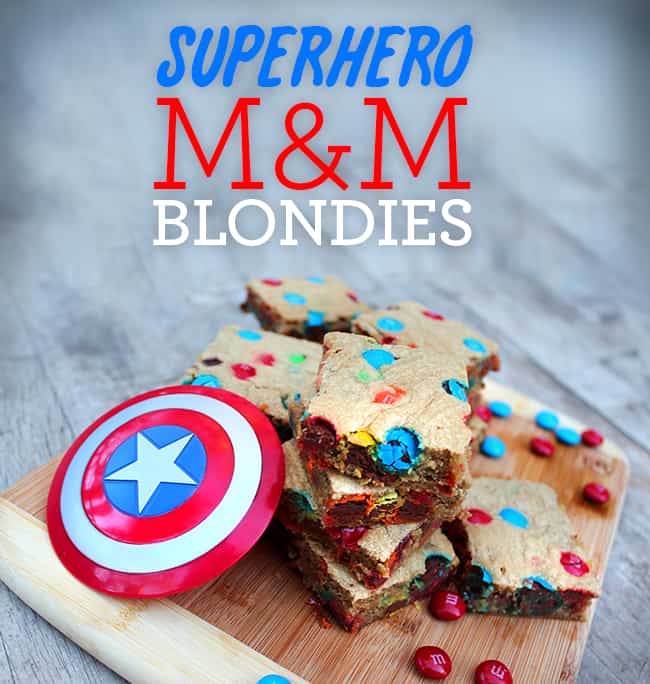 these M&M's Blondies are fit for a Superhero! After all, Heroes Eat M&M's too...