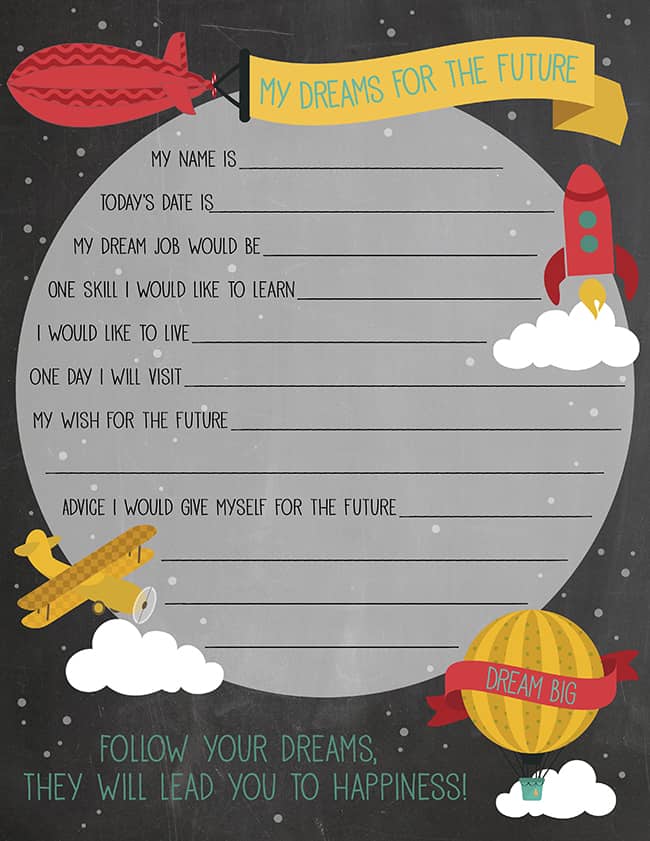 All you need to do is print out this FREE printable "My Dreams for the Future" questionnaire, and set the table with some milk and cookies. Then let the conversation begin.