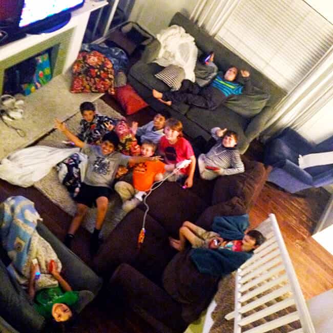 for the movies, the kids went old-school and chose Gremlins and the Jurassic Park Trilogy. they had a blast watching the movie while enjoying homemade movie popcorn. they also played Nintendo Super Smash Bros. and with the 8 player option, they all got to play together at once. that was super fun. they did make a mess by bringing all the sofas and blankets in the house downstairs into our living room, but i didn't care. they were having such a great time. it just goes to show you that you don't have to plan an extravagant party to make it an awesome party. we went simple and still had a great time.