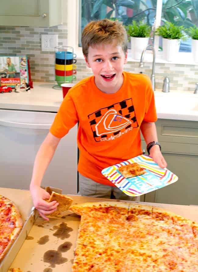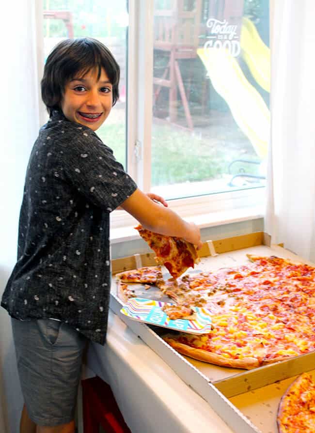 it was no question that we were going to have pizza. this would be the most crowd pleasing meal, but to make having pizza extra special, i decided to get GIANT pizzas. and that they were.