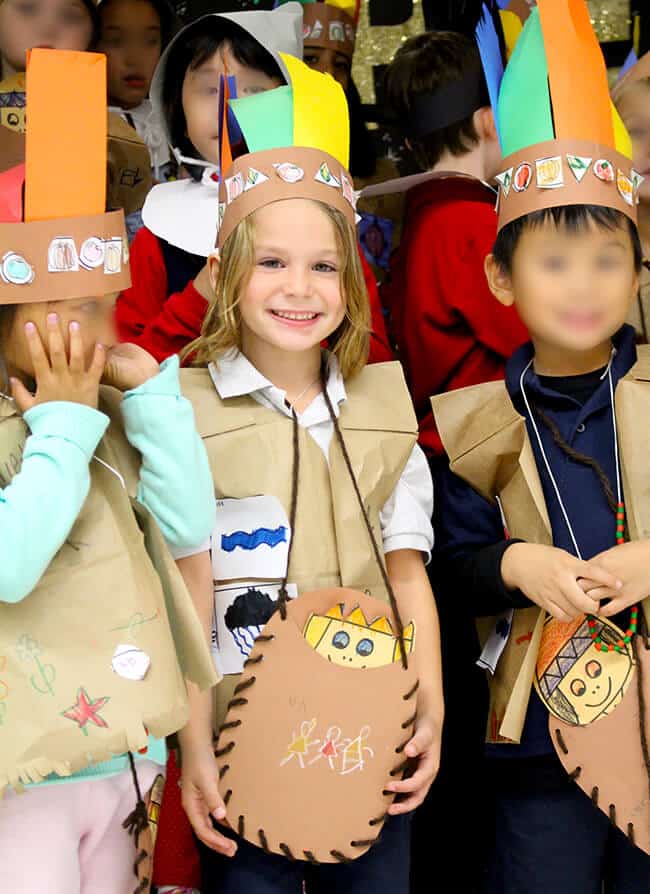this week i got to attend his kindergarten class feast. it was absolutely adorable. they made their very own costumes...that paper baby in a papoose...i die! they sang us Thanksgiving songs.