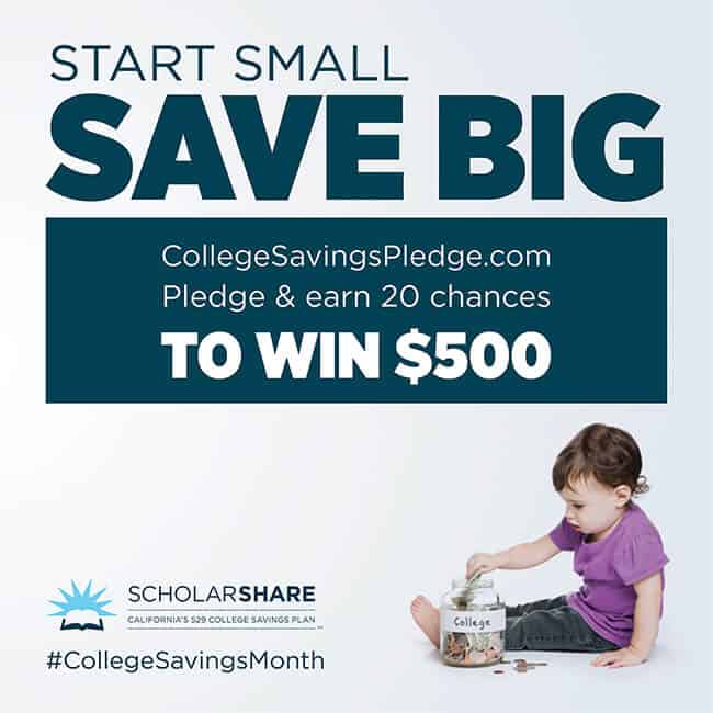 ScholarShare is doing something BIG!!!! to celebrate National College Savings Month, ScholarShare is hosting its annual College Savings Pledge Sweepstakes. participants are encouraged to declare how much they can save on a monthly basis for their future college grad – even if it is just $25. yep! all you have to do is pledge that you will save for your child's future. then, throughout September, five eligible sweepstakes entrants will be selected each week to receive a $500 ScholarShare Gift of College gift card to support their savings goals.