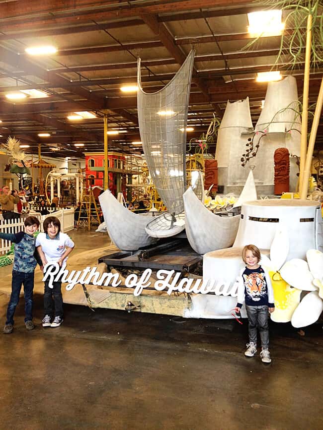 for the past few years, we have been fortunate to have the opportunity to check out Dole's float entry for the Tournament of Roses Parade as it is being built and decorated for the big parade day. it has always been a fun and exciting experience for the kiddies to see the before and the beautiful after as we watch it glide down the parade route on television.