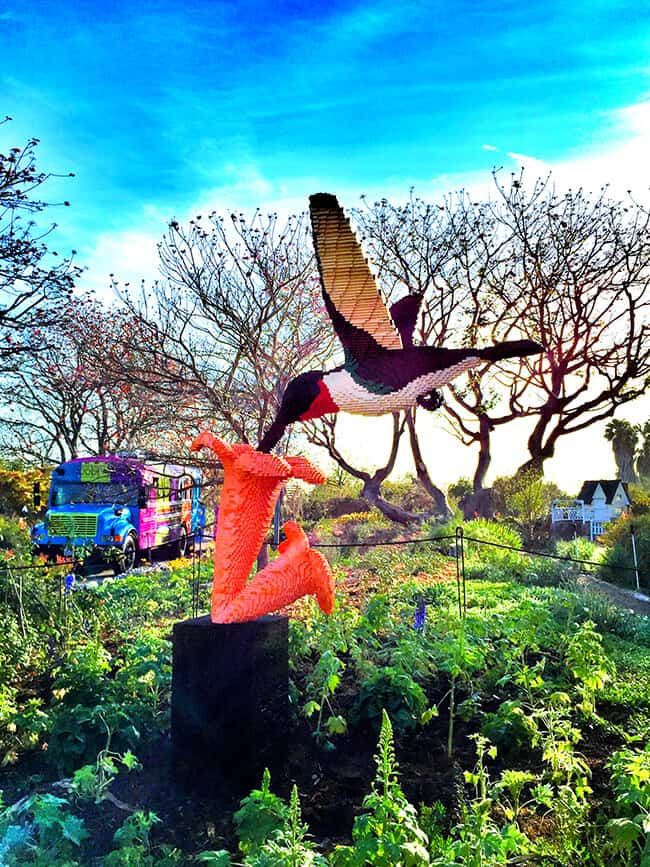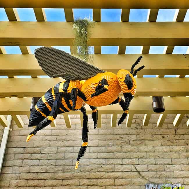 i am so glad we decided to check out the Natures Connect exhibit at the South Coast Botanic Garden. it wasn't a bad drive from Orange County...only about 40 minutes. and we left in the morning when there wasn't any traffic. after you visit, there are lots of great food places in Palos Verdes to grab a nice lunch. it could make the perfect family day. the admission price is pretty reasonable. $9 for adults, $4 for ages 5-12. there is also a family year membership for $65 that can be used at multiple arboretums in Southern California. it is harder these days to find low cost activities for families, so this is a great idea. where else can you see BEE-utiful Lego sculptures like these....