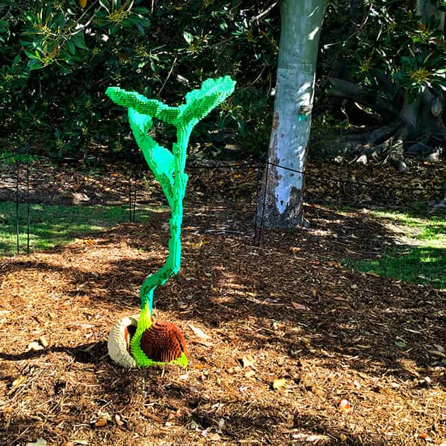 last weekend the boys and i headed out to Palos Verdes to check out the Nature Connects – Art with LEGO Bricks Exhibit at the South Coast Botanic Garden. it's been forever since i have been outside Orange County and thought it was time to get some exploring in with my boys. it was my first time visiting the South Coast Botanic Garden, which is a gorgeous arboretum that has lots of trails and gardens to explore. right now they are currently hosting the Nature Connects exhibit which is an award winning, record-breaking exhibition that is touring North America. it is created entirely with LEGO brick pieces, and features larger-than-life sculptures built with LEGO bricks by New York artist Sean Kenney.