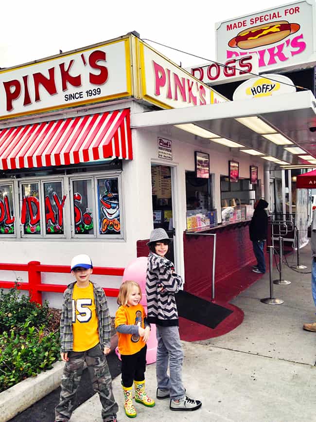 today is National Hotdog Day, and i thought this was the perfect time to share our visit to the historic Pink's Hotdogs in Hollywood. i took the boys there to try some of their famous hotdogs on a visit to Los Angeles earlier this year, and we had a lot of fun.