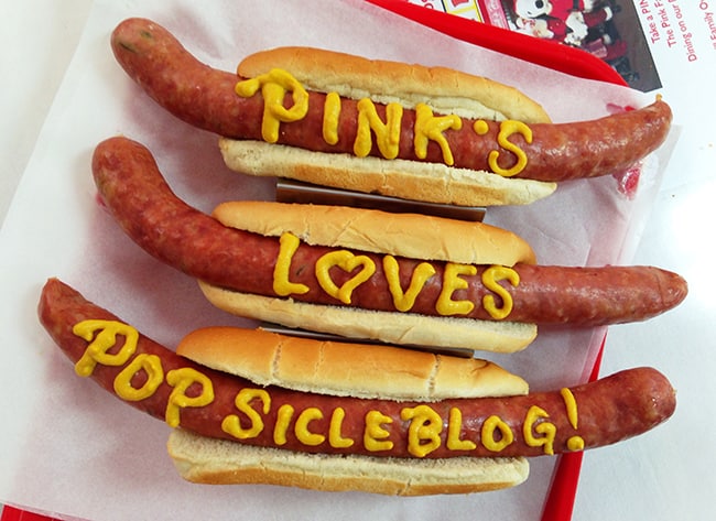 i am so flattered that i'm thinking of changing my name to "Hotdog Blog"…LOL! thanks Pink's Hotdogs for the fabulous meal…Popsicle Blog Loves You Too!