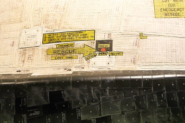 being able to see the Space Shuttle close up is very different than seeing it on television or in pictures. the outside is made up of unique materials all with special functions.