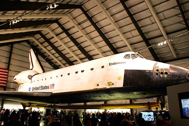 if you want to visit the Space Shuttle Endeavor, you must make an appointment and schedule your time of visit. it costs $2 per person, unless you are purchasing a ticket to one of the Special Exhibitions, then it is included in the cost of that ticket. by limiting the exhibit to those who make appointments, it keeps the space from getting too crowded and makes the exhibit more enjoyable. the Endeavor exhibit includes hands-on and informative kiosks, and also entrance into the Samual Oschin Pavilion where you can see the shuttle.