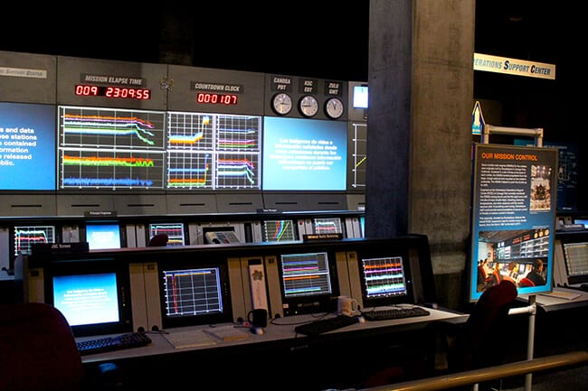 there is also a replica of the Mission Control Center where the crew here on Earth communicated with the astronauts and the Space Shuttle.