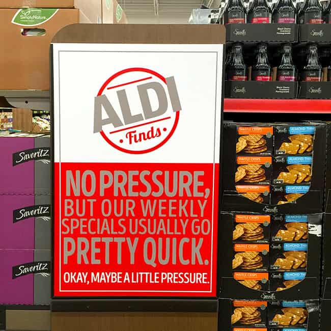 make sure you know about ALDI Finds, which are premium food and household products that are only in stores for a limited time. Product variety depends on the season, and there’s usually a theme for the week’s Finds. ALDI advertises these specials in its weekly ads and online so shoppers can plan ahead.