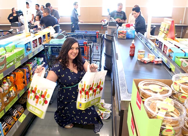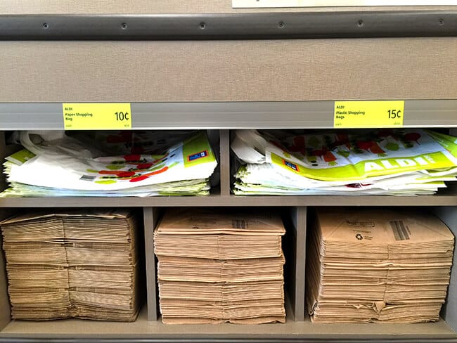 next, you need to bring your own bags. if you forget them, don't worry. you can purchase paper, plastic or reusable shopping bags for a low price. your cashier will quickly scan your items and put them back into your cart. you will then take you items to the back counter and bag them up yourself. this not only save you money, but it also saves time, as the cashier is able to service more customers at a faster pace.