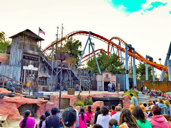 sit down in the Knott's Wagon Camp and rest your feet while witnessing Knott's signature rowdy, comical, western stunt show. will the bad guys manage to re route and steal the gold? you can only find out by watching the show!