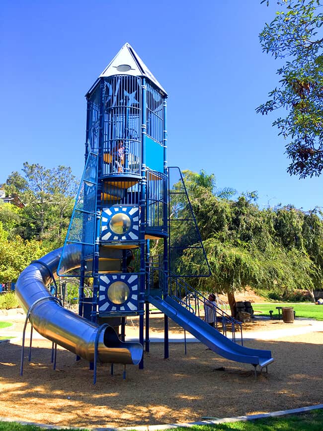Bluebird Park has many different areas to play and enjoy different adventures, starting with this cool rocketship play structure. This had to be one of the boys favorite things about the park.