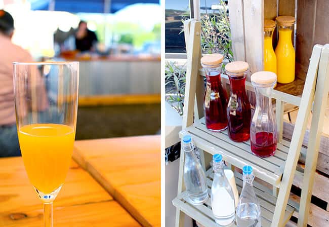 here you can help yourself to fresh juices, champagne, coffee, fresh breads, butter and jams.