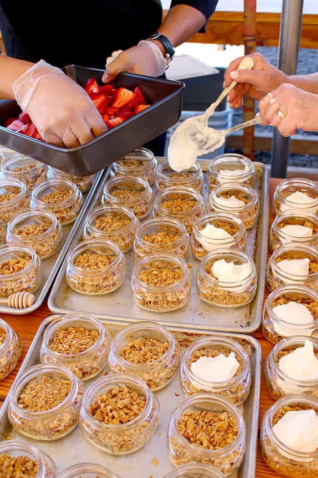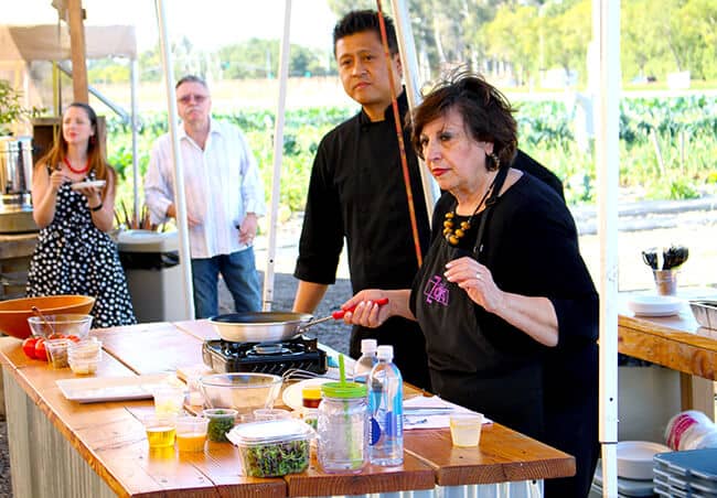 at this particular Breakfast in the Barn, we were treated to a delicious meal prepared by Chef Zov Karamardian, owner of the well-known Zovs Bistros in Orange County. she shared some of her cooking secrets, stories of the history of her restaurant, and tips and tricks to making food taste wonderful, all while doing a live cooking demonstration and answering questions from us guests. each Breakfast in the Barn has a different chef, so you are going to want to come again and again.