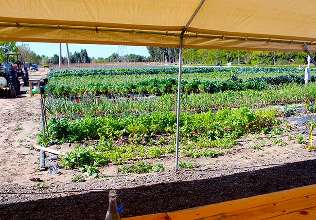 upon your arrival you will be directed to a tented area on the farm that overlooks one of Manassero Farms vegetable fields and Pasquel's garden.