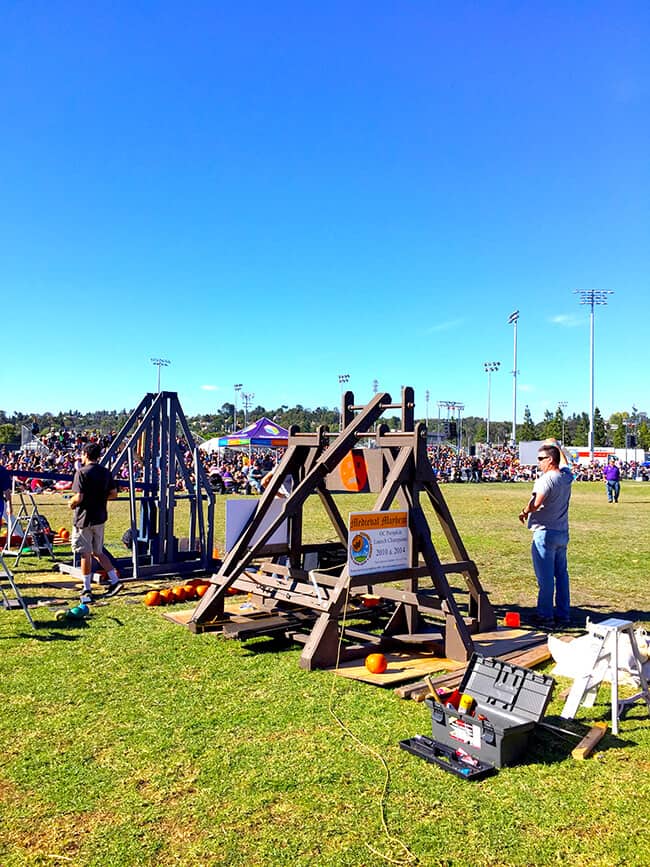 every year the boys and i look forward going to the Annual Discovery Cube Pumpkin Launch at Cal State Fullerton. it's just one of the awesome FREE events that Discovery Cube OC offers to the community. families from all over Southern California attend to see pumpkins launched through the air by teams competing for the record of launching the most pumpkins - the farthest and closest to the targets. it's quite a show, and very entertaining.